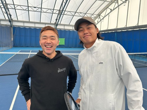 このラケットの打ち比べインプレにご協力いただいたのが上杉海斗プロ!