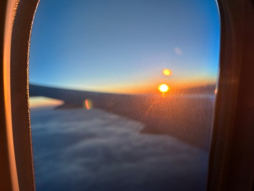 帰りの飛行機の中からはちょうどキレイな夕日が♪