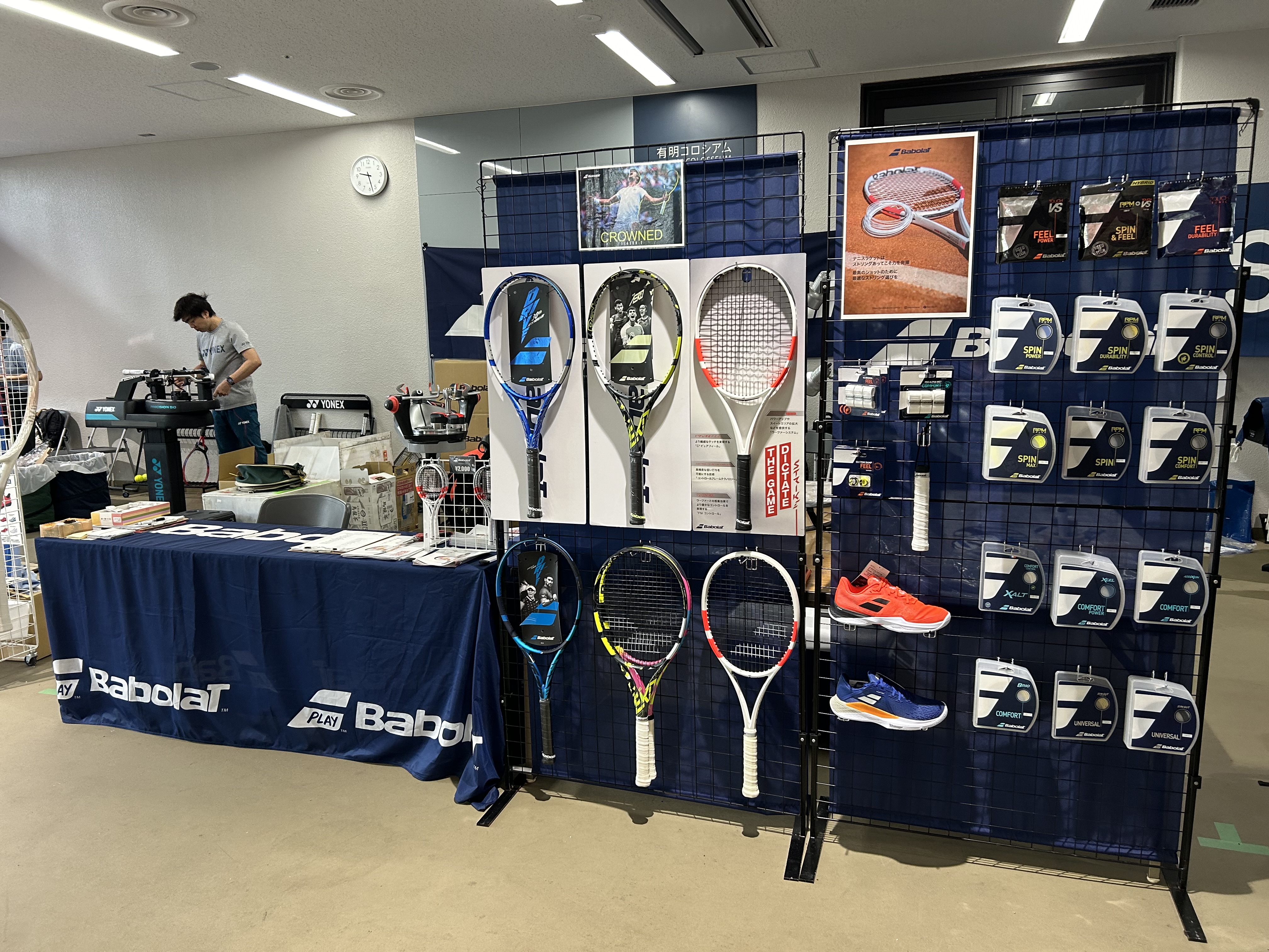 【Babolat】のストリンガーとしての参加させていただいているので、メーカーさんのブースのところでストリンギングしています♪