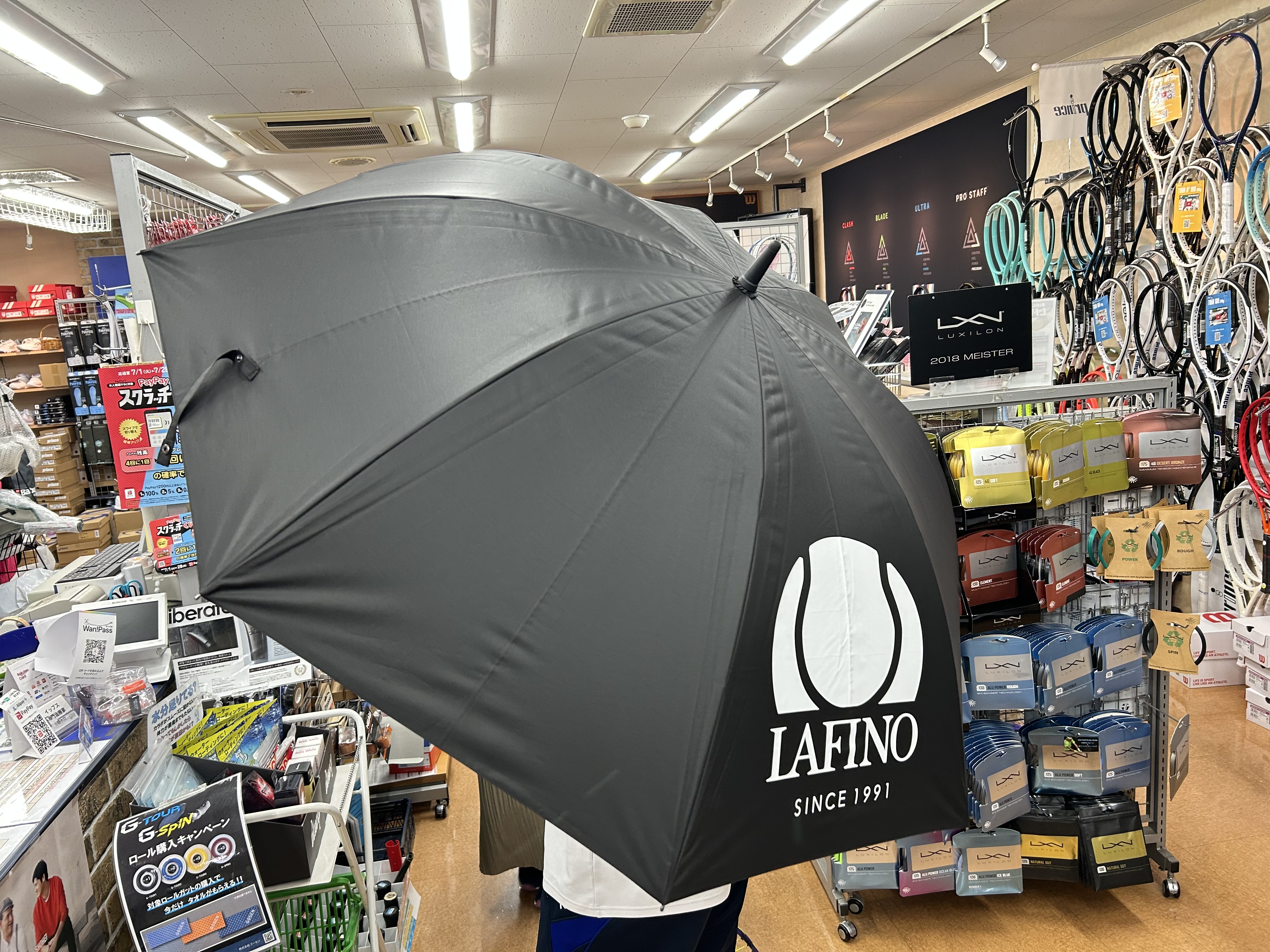 急な雨の時にも使えますし、何よりこの強い日差しを遮れるのでお外でテニスをする方や観戦をする方には必須のアイテム!