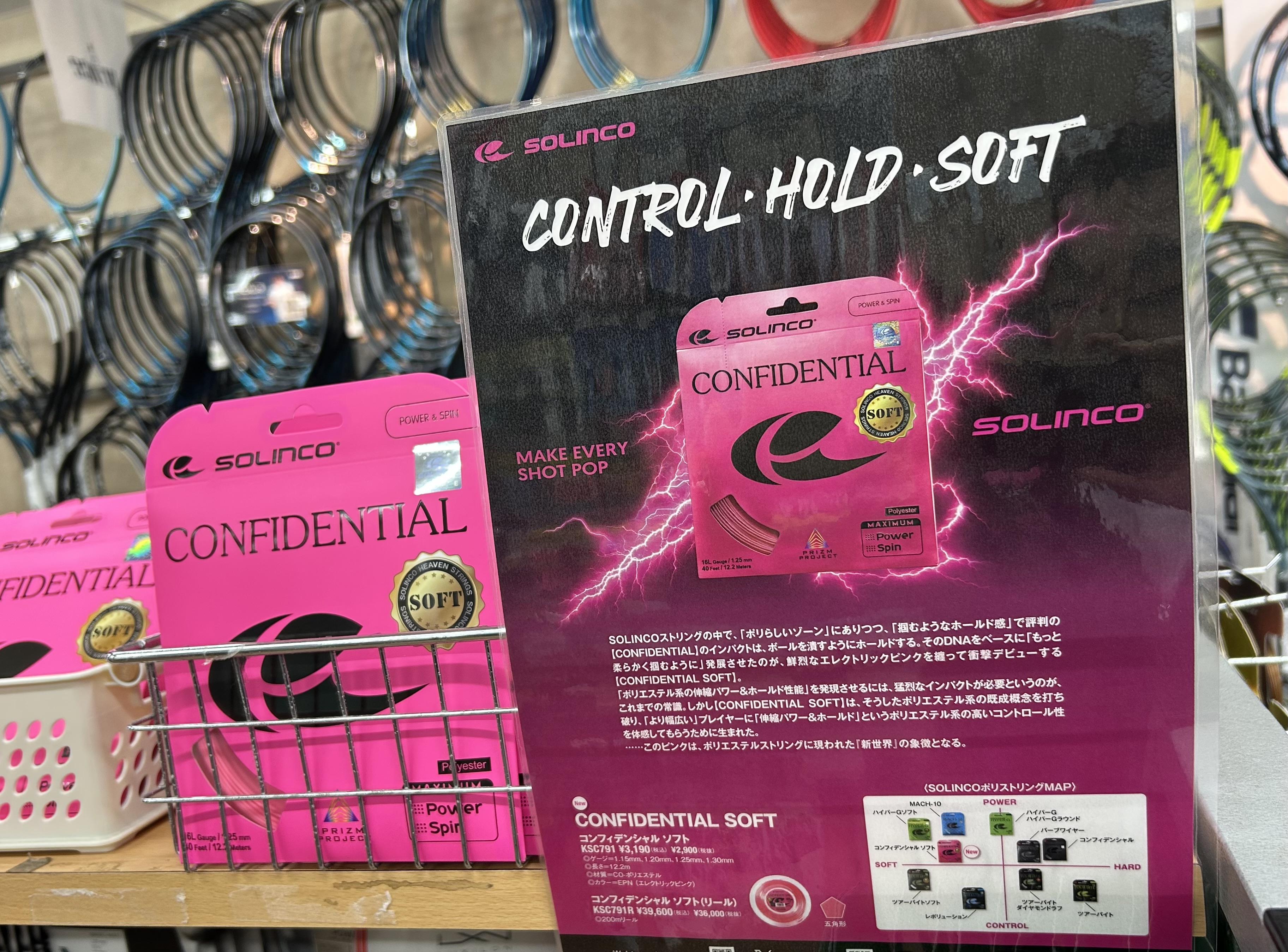 エレクトリックピンクのカラーが特徴的なストリングですが、パッケージも目立つピンク!