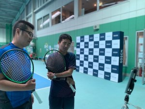 中村コーチと私のマイラケットにセッティングしてのインプレ収録となります!